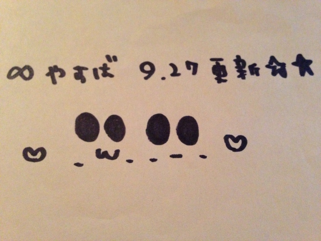 ∞やすば∞9/27更新☆★ ☆目ん玉重い章大クン(ToT)ニャーo(^・x・^)w疲れ目(。┰ω┰。)?ホットアイマスクがオススメデスよ。・∀・)ノ彡☆稽古気合いだねヾ(´▽`*)ゝいってらっしゃ〜いっ♡(*´∀`*)ノ=★秋は眠いよね(☆′Å`)ノ゙石焼き芋イイよね〜ヽ(゜▽、゜)ノ♡