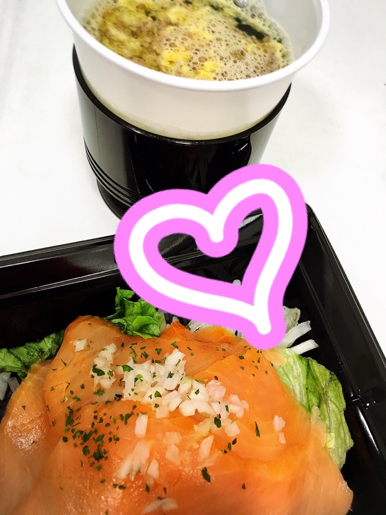 スモークシャケサラダと玉子スープ❤(*´〜`*)