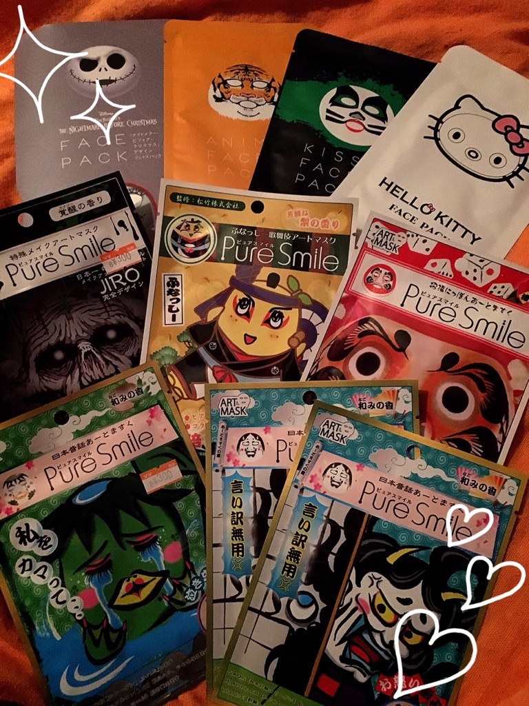 フェイスパックたち♡(○´∀`○):*゚..☆ ハマっちゃってて( ´ ▽ ` )ノ☆面白いモノとか見つけると♡(*゜∀゜*) ついつい買っちゃっていっぱいありマスo*・∀・)σ☆今日は!どれにしようカナ+。♡(o・ω-人)♪+。