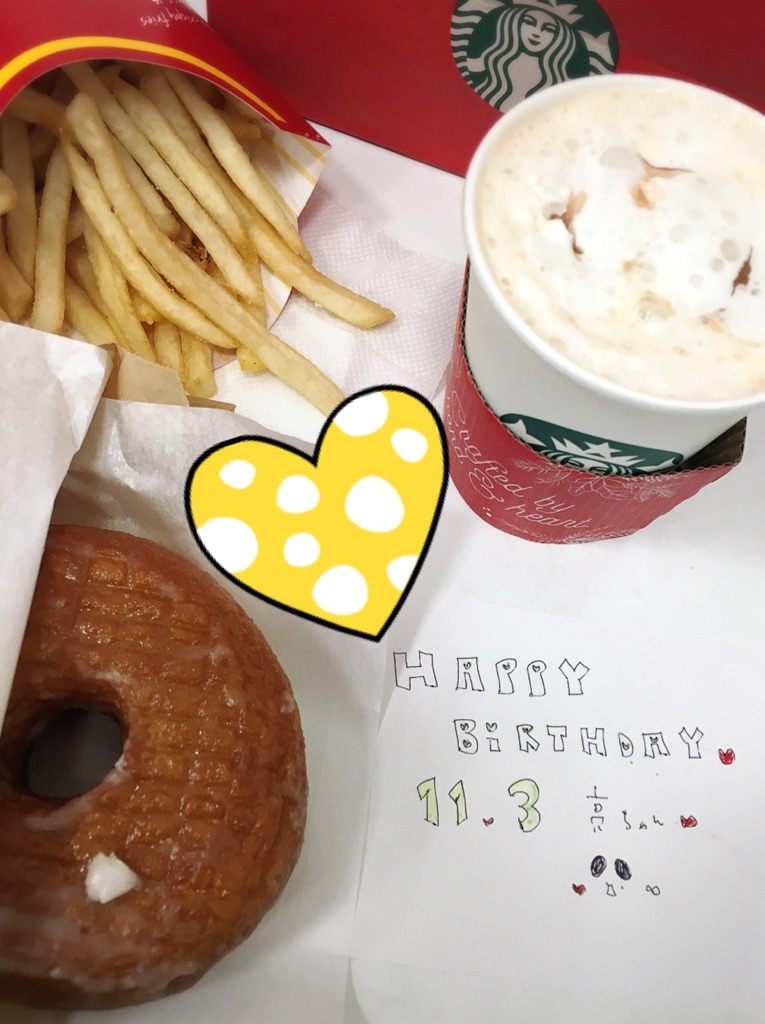 はっぴーばーすでぃ☆亮ちゃん(´д`.)♡ レンジャーで☆自分でお祝いしてる亮ちゃんかわゆ(´д`.)♡髪を少しだけどうにかした隆平くん( ´ .♡ ` )ノ💕爪も✨明後日のサタプラ生健康診断『手』♥(*`∀´*)ψ楽しみにしてマス(*´艸`*)💕職場にてハピバ感あんまりないケド。・∀・)つ彡☆wネクタリンピーチ ホットあったまったケドフラペチーノの方が好きでしたヽ(・∀・)★